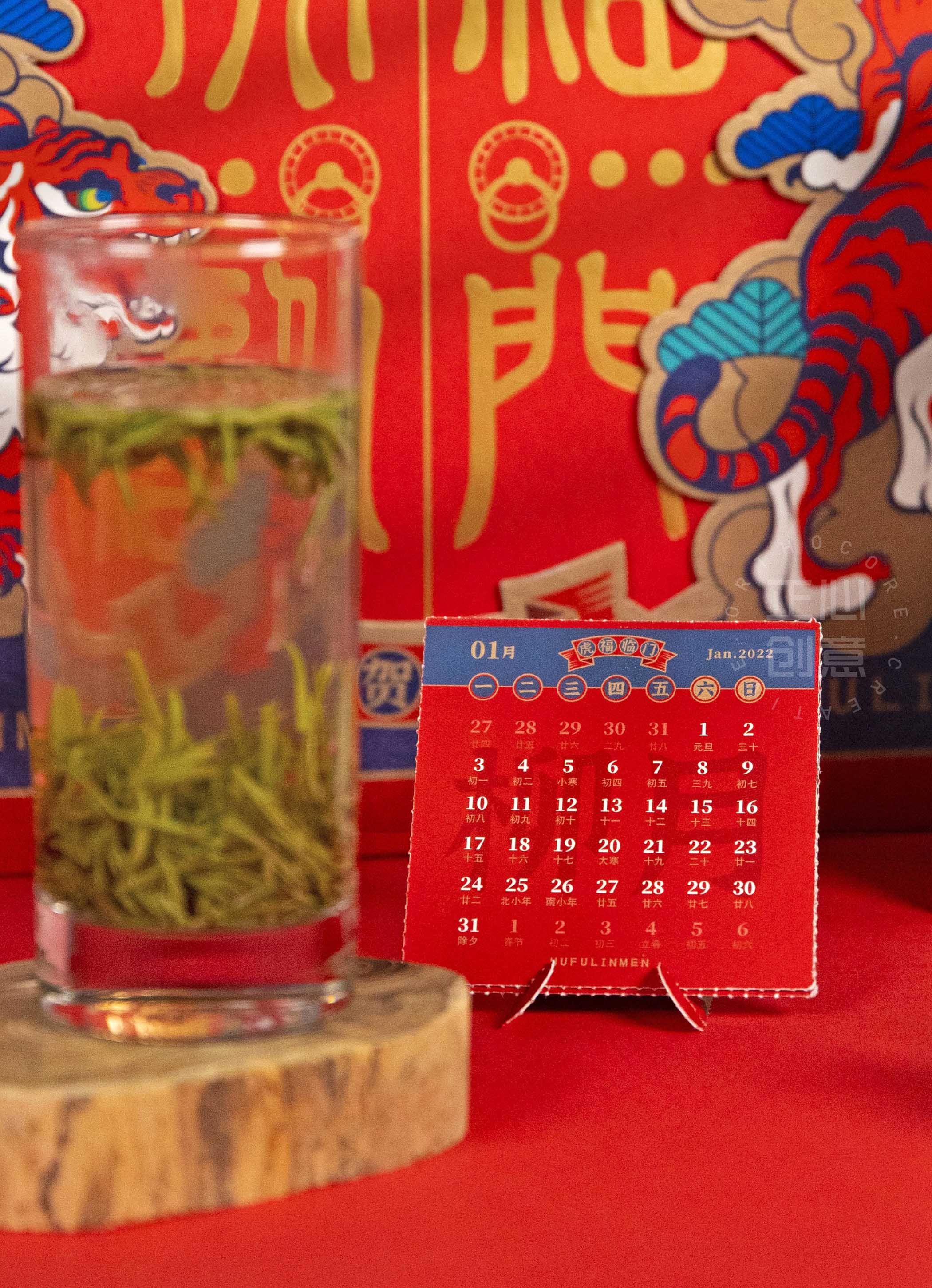 岁时知信在节趣,寅虎贺岁启桃符。